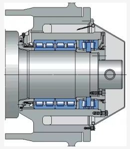 If the load-bearing capacity of the bi-directional tapered roller thrust bearing is insufficient, an alternative solution to the TDIS design is to use double row tapered roller bearings with higher contact angles.