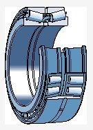 There are two outer rings (cup-shaped) and a double row inner ring with two rollers and a cage assembly (double cone), usually with a spacer between the two outer rings