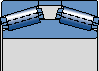 There are several rows of rollers arranged face to face (load lines converge towards the axis of the bearing)