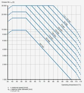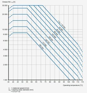 The lifespan of the lubricating grease in the chart is effective under the following operating conditions: